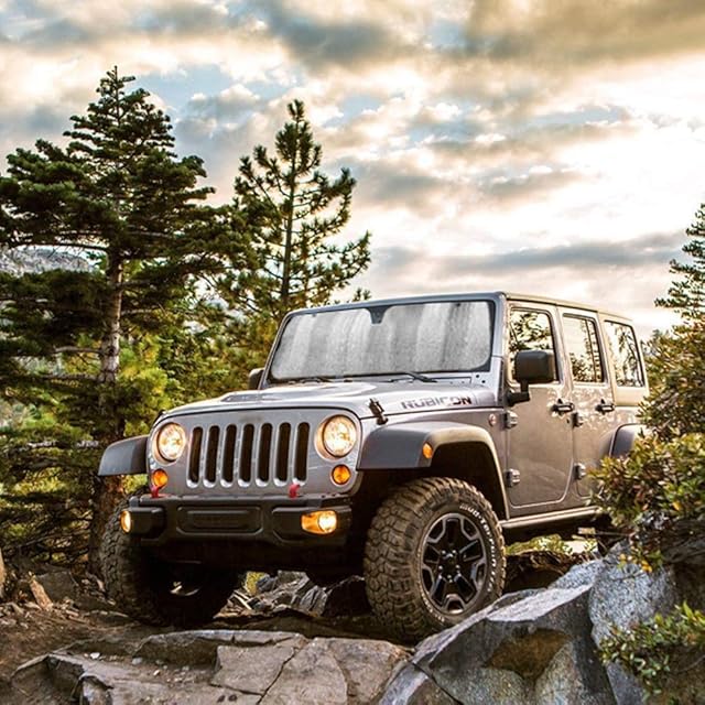 Big Ant フロントガラスサンシェード 2007-2023 Wrangler Rubicon Sahara TJ JK JKU 2 & 4ドアブロック 紫外線 サンバイザープロテクター 車のサンシェード 車を涼しく保つ 車のウィンドウシェード | HiKaRiストア