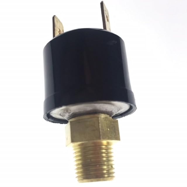 <B>エアサス プレッシャー スイッチ 90-120PSi 1/8NPT ネジ エアホーン エアタンク</B><br><br>・エアサス、エアホーンなどエアータンク用のプレッシャースイッチです。<br><br>・90PSiでスイッチが入り120PSiでスイッチが切れます。<br><br>・仕様:ネジ径:1/8<br><br>・ON:90PSi(0.62Mpa) <br><br>・OFF:120PSi(0.82Mpa)<br><br>※取扱い説明書はついておりません。<br><br>※輸入品ですので、外装にスレ、割れ、凹み等ある場合がございます。ご了承ください。