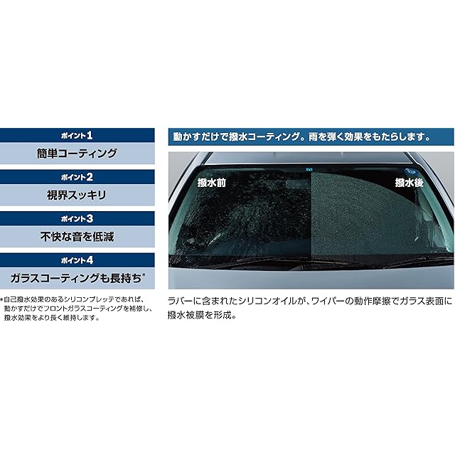 [撥水準備]ガラスの表面に付着した油膜、虫、砂などの汚れを取ってから、ガラス面が乾いた状態で5分間程度ワイパーを作動させて撥水被膜を形成させてください。