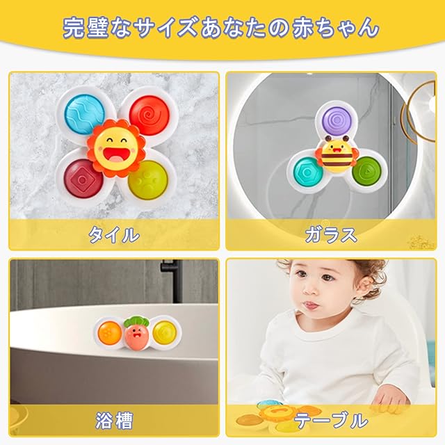 【お風呂おもちゃ】吸盤で簡単に壁に貼り付けて回転水遊び!赤ちゃん、小さな子どもに大人気のおふろおもちゃです。 3個セットで浴室だけでなく、窓ガラスや台所などにも使用できます。