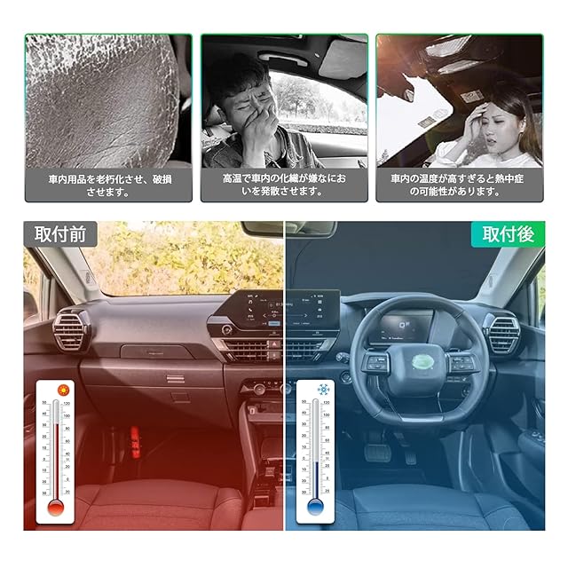 【多機能】高品質のナイロン布をチタン銀コーティング技術で配合し、高分子構造保護により、夏の日差しと紫外線の侵入を遮断し、耐え難い高温を遮断し、日焼けによる車内の高温を減らすことができます。また、冬は冷気の侵入を防ぎ、車内の温度を保ち、保温効果も優れています。夏であろうと、冬であろうと、車内でゆっくり休憩することができます。また、車内の設備の老朽化と破損を防止し、愛車を保護します。