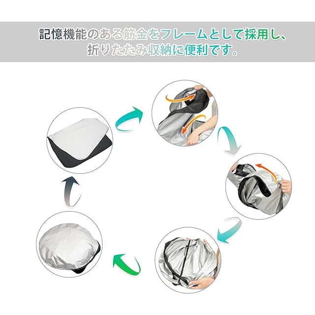 【取付簡単】サンシェードを広げて、サンシェードの靭性を利用して車のフロントガラスに取り付け、サンバイザーで挟んで固定すればいいです。あまり時間をかけなくても、初心者でも取付ができます。また、サンシェードは記憶機能のある筋金で作られていますので、収納も簡単で、車内の使用空間を占用することもなく、再使用しても変形しません。