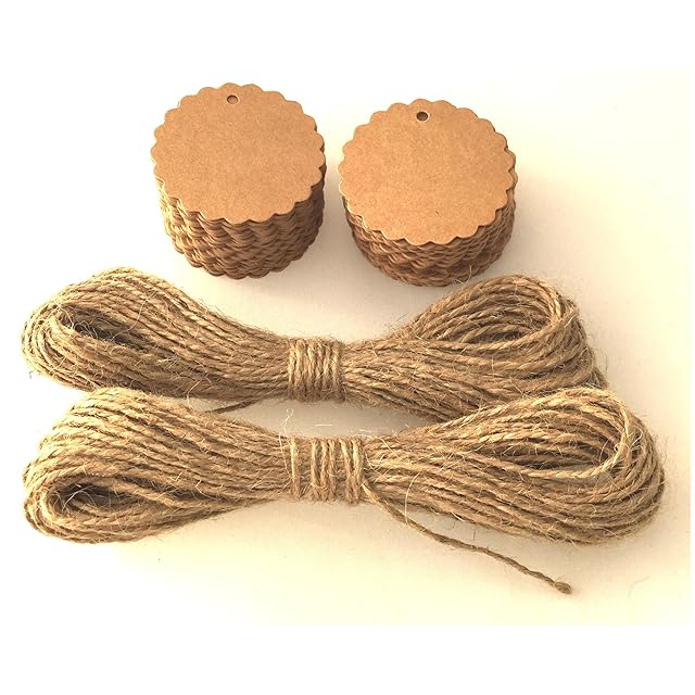 ハングタグは280gsm程度で重量品質クラフト紙カードで作られています。ジュート撚糸は、ナチュラルカラー、約1.5ミリメートルの厚さは、それぞれ15メートルの長い2かせています。