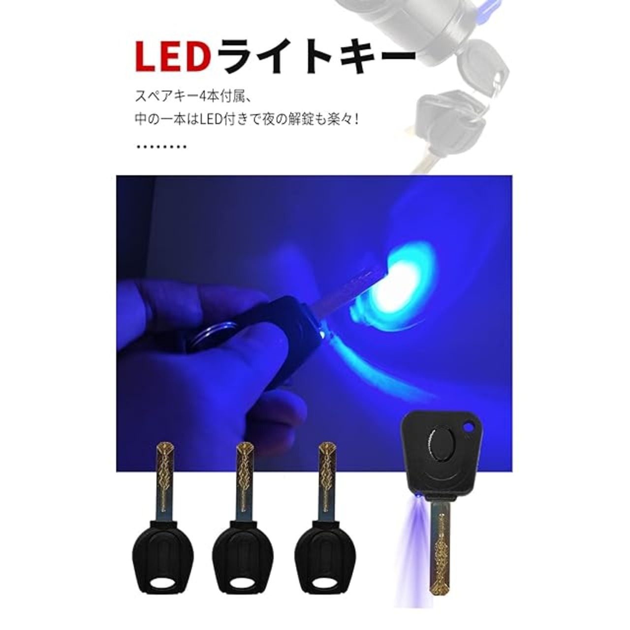 【防盗キー四本付属】車によく使われているウェーブキーを採用しており、コピーや合鍵の作成はかなり時間とコストがかかりキータイプで、抜き差しがスムーズです。キーは摩耗する物なので、スペアキーを四本ご用意しました。1200mm・1500mmの二つのバリエーションがありますので、自転車・バイク・原付など適用範囲が広いです。
