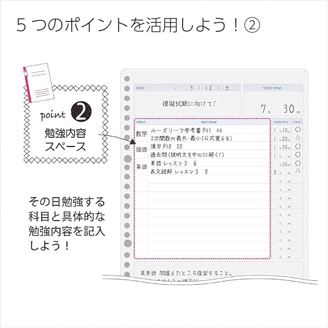 勉強のスケジュールが立てられるルーズリーフ