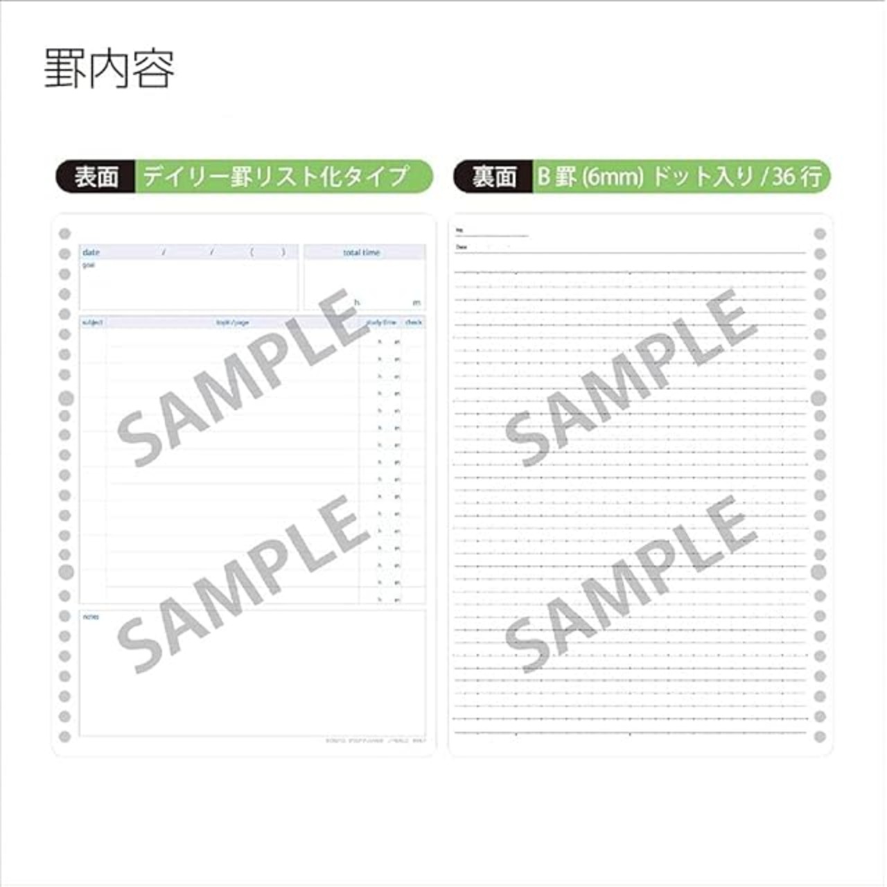 【罫内容(ウラ)】 ドット入りB罫(罫幅6mm)・36行