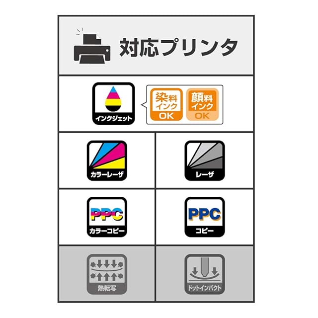 【対応プリンタ】レーザー・コピー機・インクジェット(染料・顔料対応)
