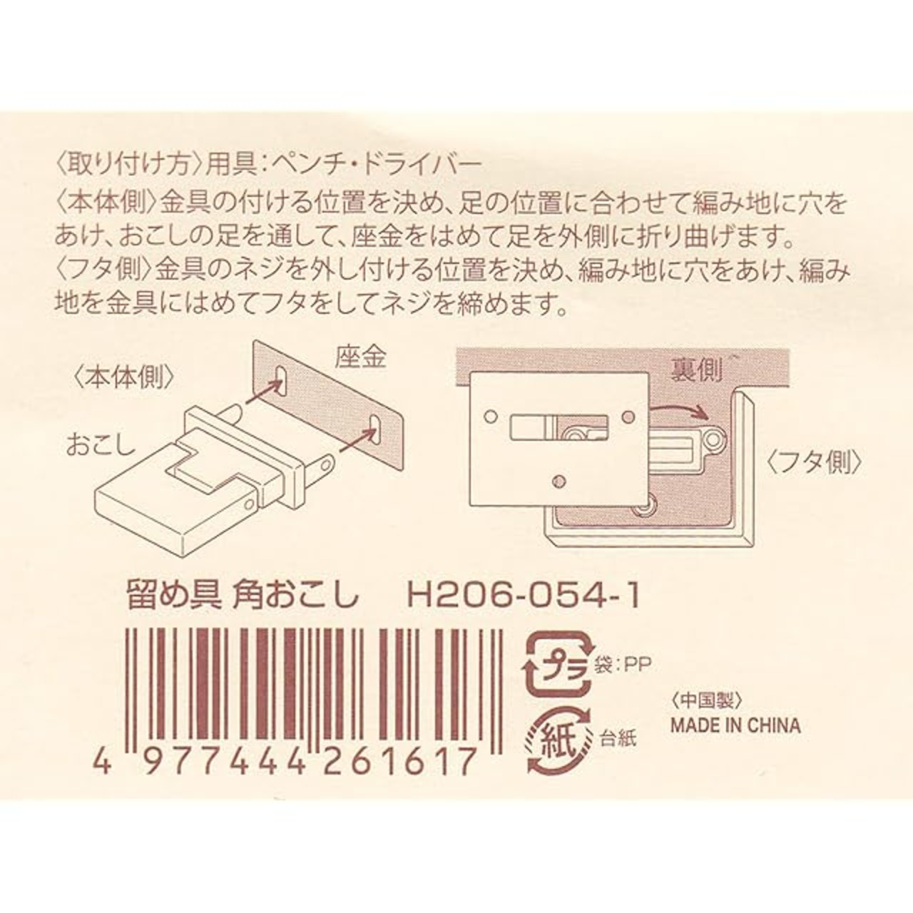 ハマナカ 留め具 角おこし 約W4㎝×H3cm 1組入 ゴールド H206-054