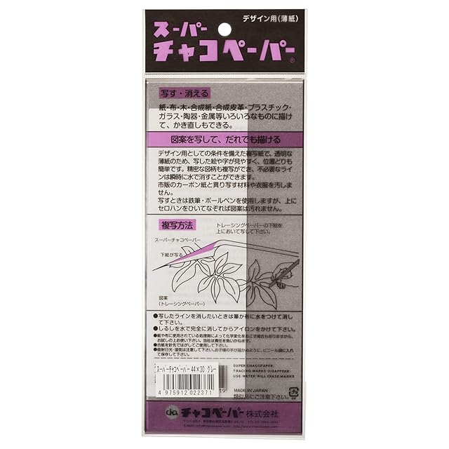 少しの水でしるしがすぐに消える。刺しゅう図案などの複写に最適です。また絵画でのトレースにもご利用可能です。薄紙タイプ。