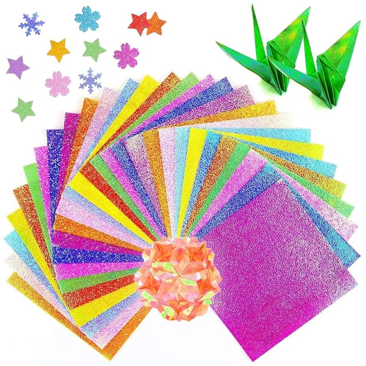 【特徴】 エンボス加工の入った、角度によって様々な色に輝くおりがみ。10色が5枚ずつ入っており、色の組み合わせも楽しめます。サイズは一般的な15cm角。