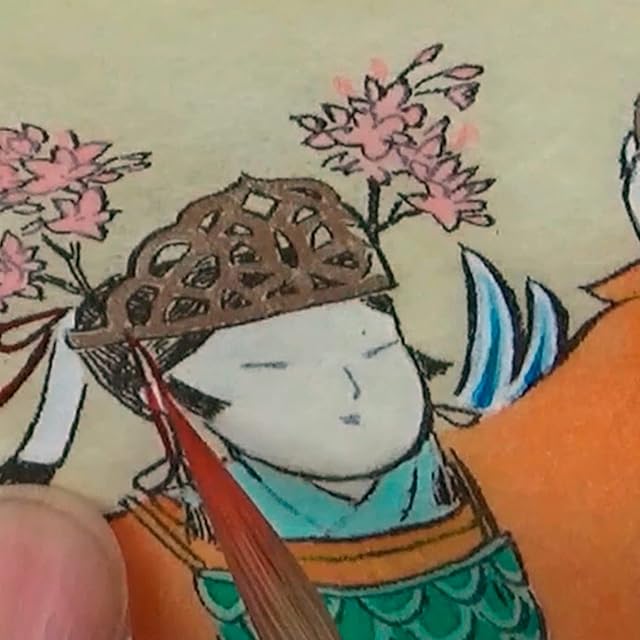 セット内容:筆 3本(黒軸面相筆・彩色筆・平筆)・陶器皿 3枚・顔彩 24色(特組)・墨液(15cc 点眼)・彩色の手引き 2種類(舟上の舞歌、伴大納言絵巻)・手本 2種類(舟上の舞歌、伴大納言絵巻)・模写用紙(機械漉楮紙ドーサ引き) 4枚・線描き練習用紙 8枚