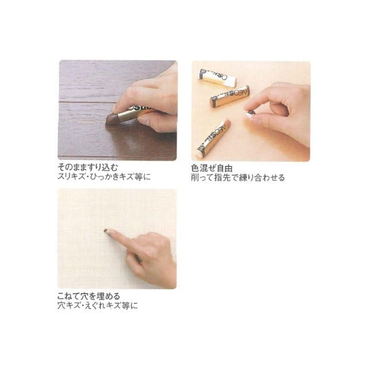 指先で色混ぜもできる1本×3役のクレヨンタイプ補修剤。