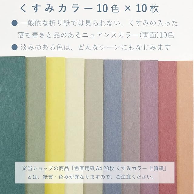 ※当ショップの「色画用紙 A4 20枚 くすみカラー 上質紙」とは、紙質・色みが異なる商品となりますので、ご注意ください。