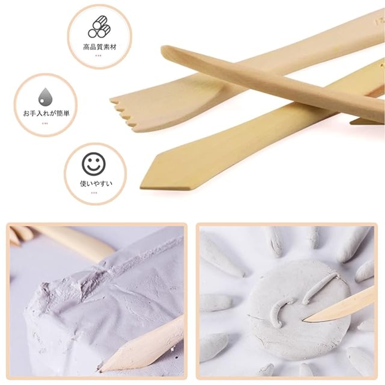 【幅広い用途】粘土細工、陶芸彫刻、ワックスカービング、模型製作、フィギュア制作、レジン製作、シルバークレイ製作などに最適です。主に軟材に使用します。(硬い木材などには使用できません。)