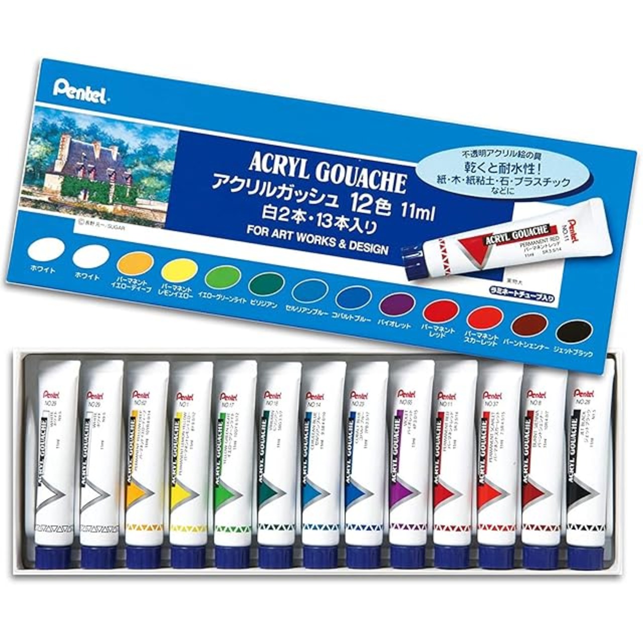 ぺんてる 絵の具 アクリルガッシュ 12色(白2本入り) WXR-12