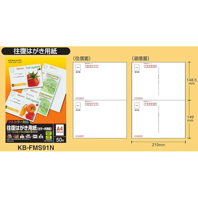 【紙厚(坪量・厚み)】 130g/m2・0.15mm 【仕様】 番号枠・切手枠あり・両面印刷用紙
