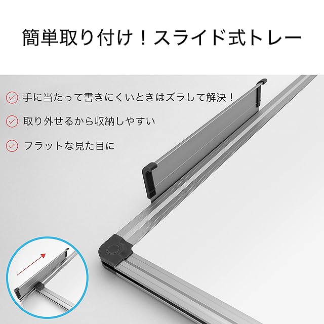 フレーム厚さ11mmの薄型ホワイトボード(コーナー部は厚み13mm)。タテヨコ両用