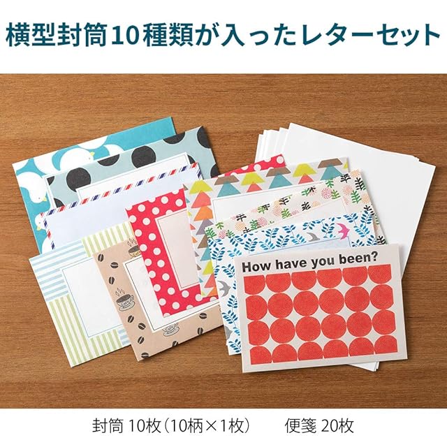 10柄の定形封筒が「がさがさ」入ったレターセット