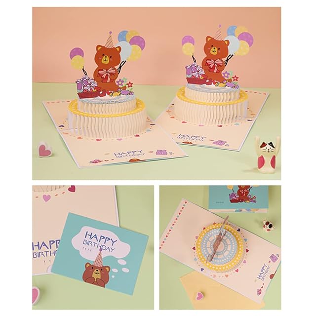3D立体バースデーポップアップカード 誕生日ケーキ 小熊 2層ケーキ 可愛い グリーティングカード 誕生日カード 子供、家族、友達への birthday card おめでとう誕生日メッセージカード 子熊 バースデーカード(子熊ケーキ)