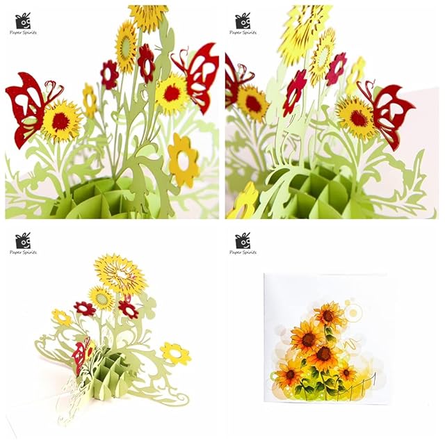 Paper Spiritz ひまわり 3D ポップアップ カード 母の日 サンキューカード 花 立体 バースデーカード おめでとうカード 結婚記念日 お見舞い バレンタインデー 封筒付き | HiKaRiストア