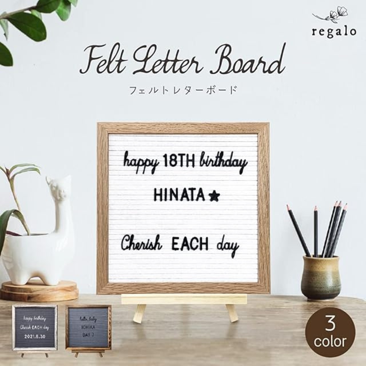 regalo フェルトレターボード 文字パーツ付き イーゼル付き 木製 誕生日 記念日 飾り フォト (ヴィンテージブラウン)