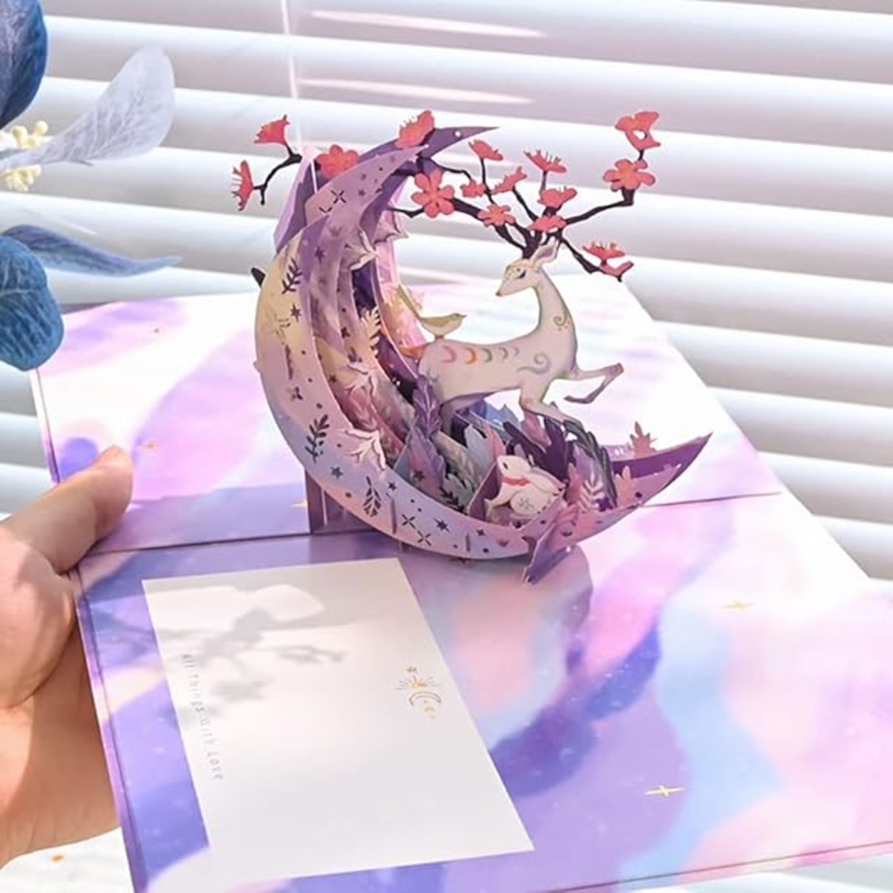 【3Dグリーティングカード】カードが開くと同時に綺麗な立体月&キリン が目に入り、受け取った人は大喜び、特に子供たちはとても幸せになるでしょう。お祝いや愛情を口で伝えるのが苦手なら、この素敵なグリーティングカードは気持ちや心を伝えることができるので、上手に活用してみてくださいね( ´▽`)