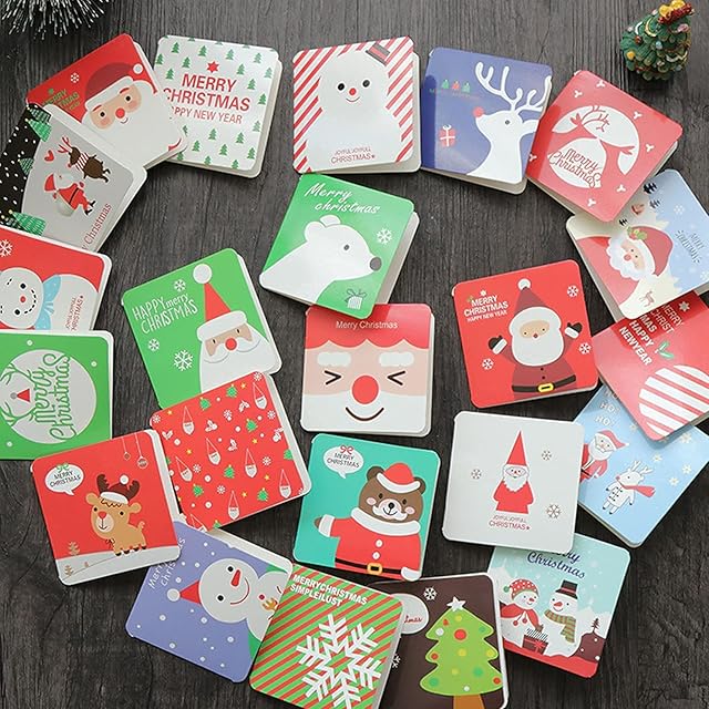 【BEAUTY PLAYER】クリスマスカード ミニサイズ メッセージカード 24枚入り 折りた状態7*7cm ミニカード 感謝状 サンキューカード グリーティングカード 感謝カード はがき おしゃれ 子供 若者人気 お友達向けお誕生日カード 記念日 新年用(クリスマスカード 24枚 M4) | HiKaRiストア