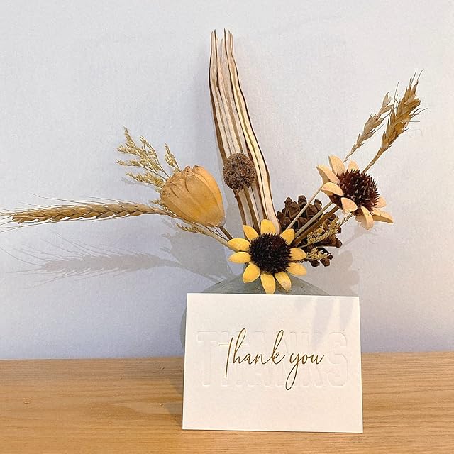 シンプルなデザイン:メッセージカードは断面カードです、カードの表面に印刷された""Thank you""は、クラシックなホワイトとゴールドの色を組み合わせ、高レベルのテクスチャーを備えたシンプルでエレガントで、カードの裏側は空白です