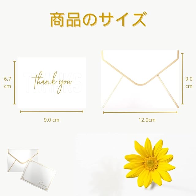 高品質:本製品のサンキューカードは、封筒と手紙に厚みがあり、丈夫な上質紙を使用しておりますので、紙質がサラサラと滑らかでとても書き心地の良い材質となっております