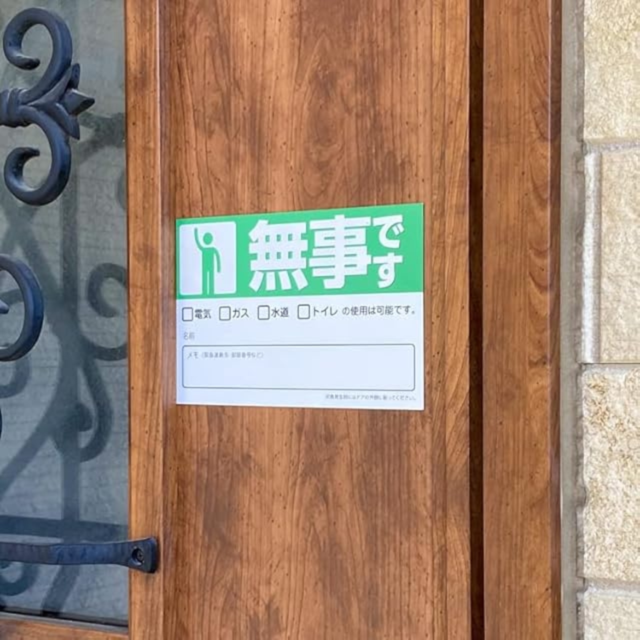 災害時に玄関のドアの金属部分に、安否確認マグネットシートを貼るだけで自治体や近所の方々などの救助者が一目でわかるシートです。