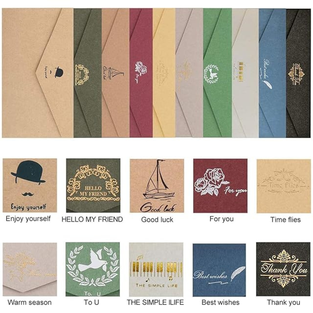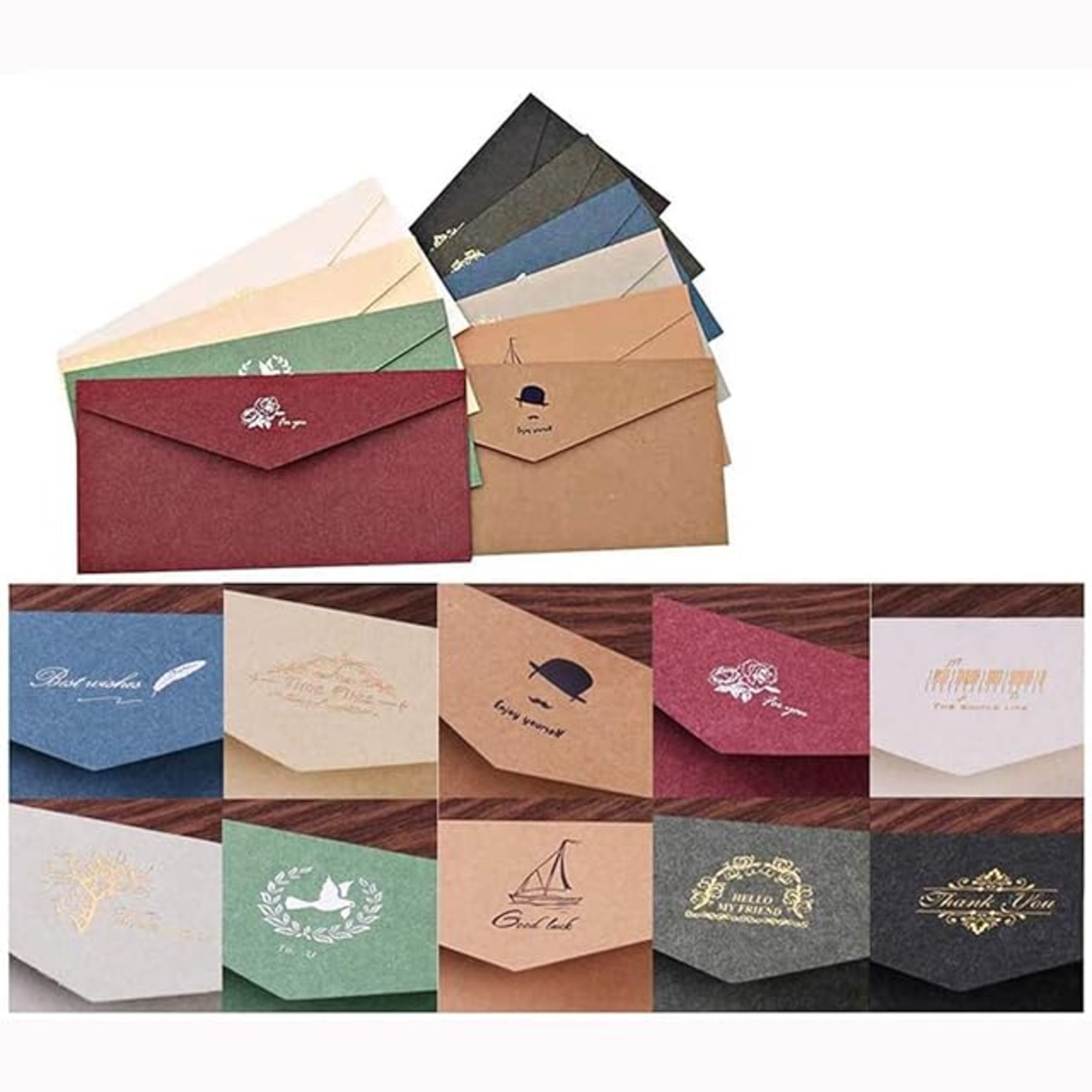 レターの内容:10色洋風レトロ封筒20枚(各色2枚)+50枚便箋(ハトロン紙)