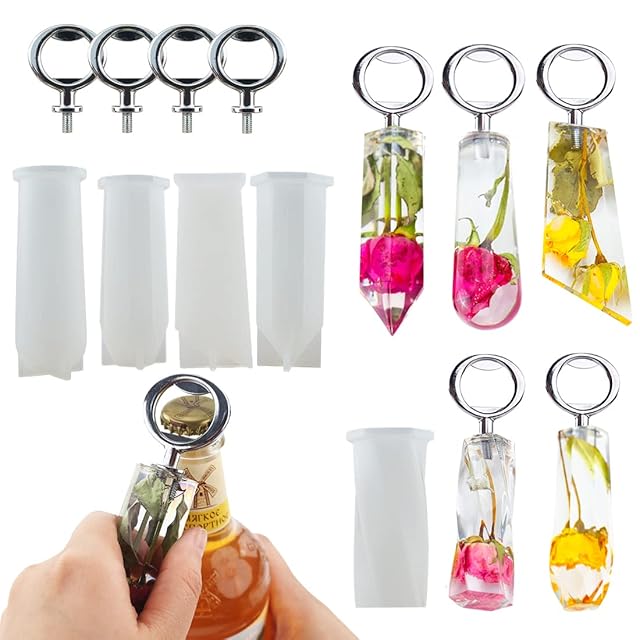 Voyyphixa ボトルオープナー シリコンモールド 5セット オープナー金具付き 幾何学的な柱体 栓抜き形 栓抜き樹脂モールドキット 瓶ビールの蓋開け栓抜き作り 不規則 幾何 樹脂 粘土 uvレンジ型 工芸品 DIY 再利用可能 ハンドメイド プレゼント 型 抜き型 (ボトルオープナー型①)