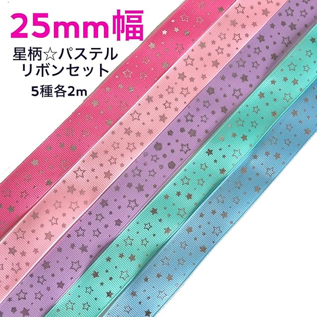 【セット内容】キラキラ星デザインリボン5種 各2m 計10m