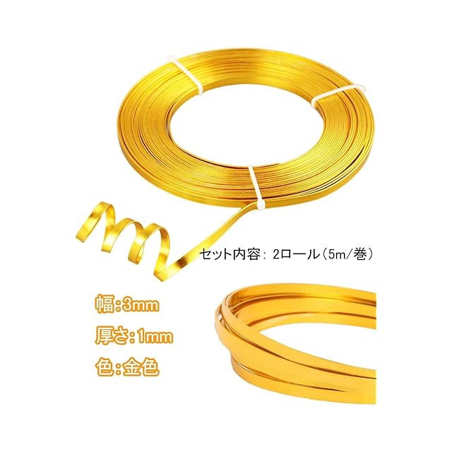 【セット内容】2ロールアルミ平角線。1ロールは5m、全部で10m;色:金色。