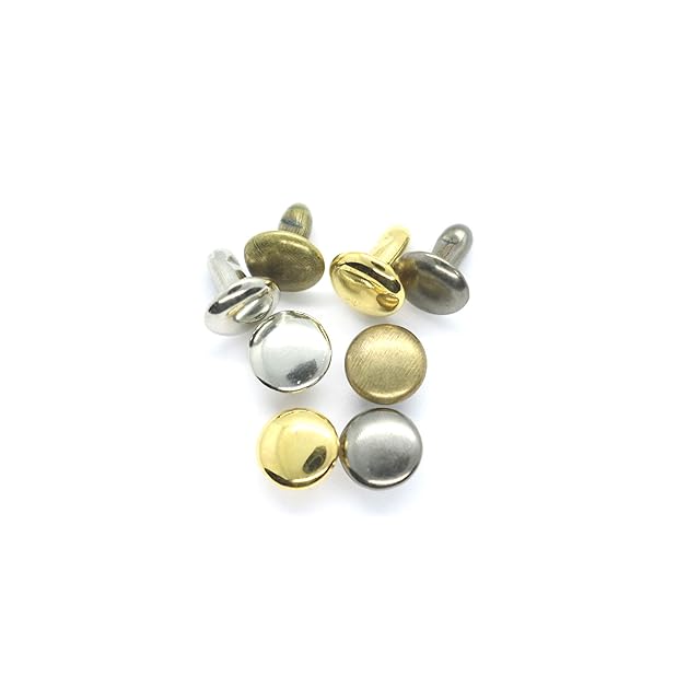 商品名:両面カシメ サイズ :頭直径 約7mm / 足全長 約7mm 色 :シルバー 内容量:100個入り (不良品対策の為、少し多めに入っています) 画像7枚目、各カラーのサンプル付きになります