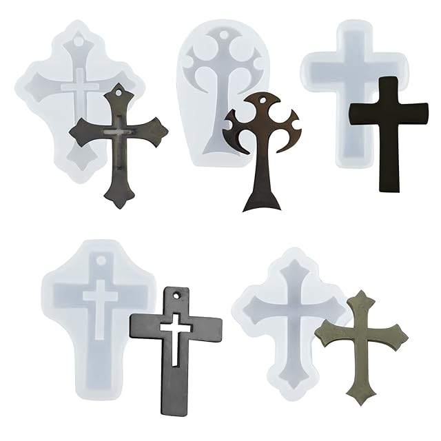 WANDIC 樹脂モールド, 5個 クロスシリコーン金型, 鋳造用シリコーン金型 ペンダント用 工芸 ジュエリー作り DIY モールド 型 抜き型 キット