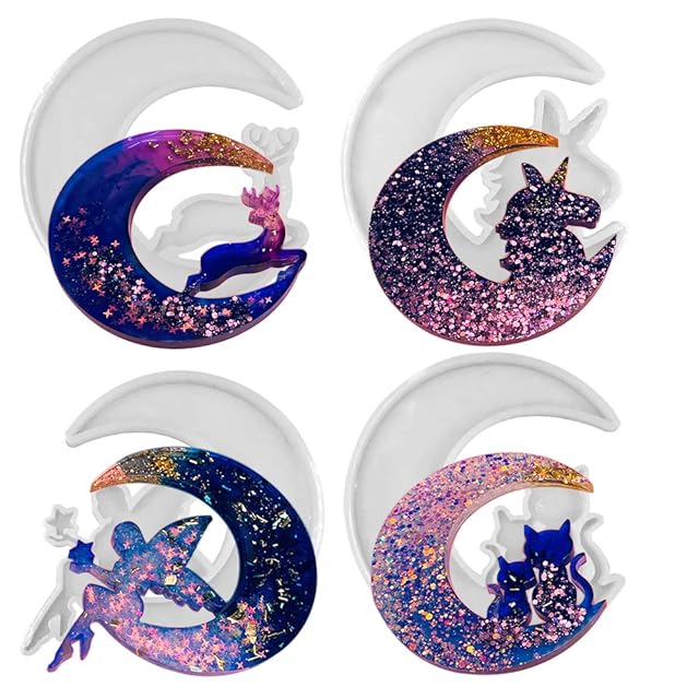 樹脂モールドセット: パッケージには4パックのシリコン樹脂モールドが含まれています。月猫、月子の牙、月の天使、月のユニコーンの型が含まれており、おとぎ話の世界を作り出します。