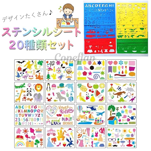 【お得な大容量セット】ステンシルシート20種類各1枚ずつの20枚セットです。1シートのサイズ:15x21cm