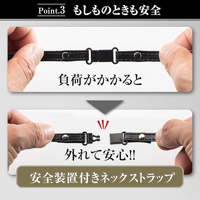 【ストラップは長さ調節可能】長さ調節が自由に(高身長の方でも低身長の方でも対応)。リール裏のクリップで装着も簡単。ストラップとリールは分離可能。胸ポケットに簡単装着。