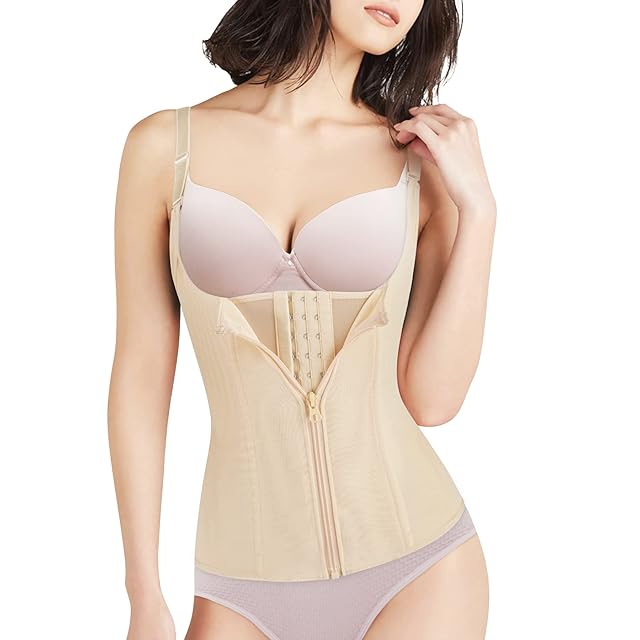 2:胸部サポートするデザインにより、バストアップになります。 ホックついていて着脱が簡単で、体型や弾力性によって締め付けを調整できます。ウエストと腹部の2層構造で、お腹を効果的に引き締め、くびれを実現します。