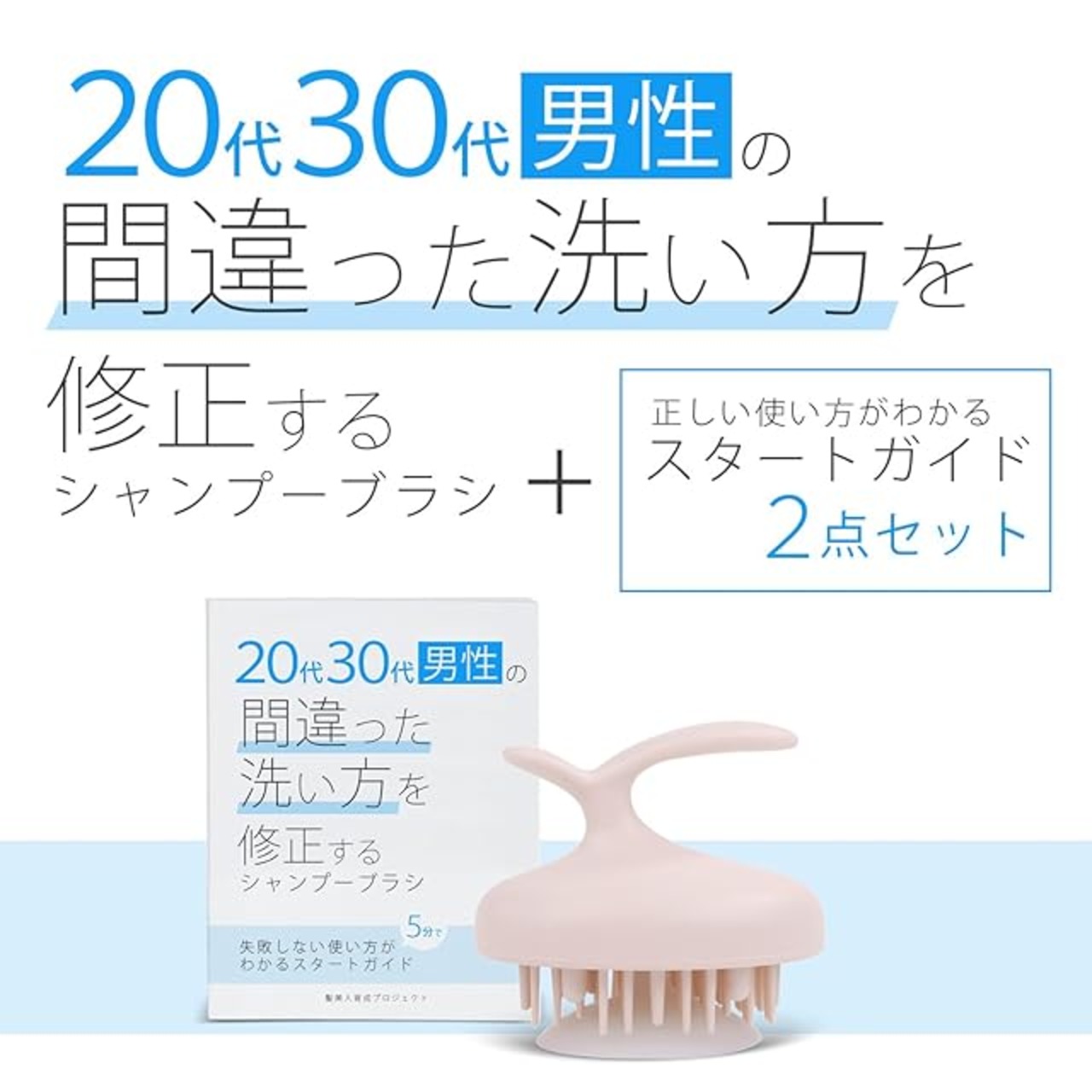 10代、20代、30代男性の間違ったシャンプーブラシの使い方を変えるシャンプーブラシです。5分間で読めるスタートガイドを読んでいただくことで、このブラシを使えば誰でも失敗しないシャンプーブラシの使い方ができるようになります。シャンプーブラシは、髪にひっかかって傷まないようになっています。また頭皮に負担をかけないようブラシの指圧を分散しています。吸盤で壁に貼り付けて保管でき、本体一体型なのでとっても衛生的です。