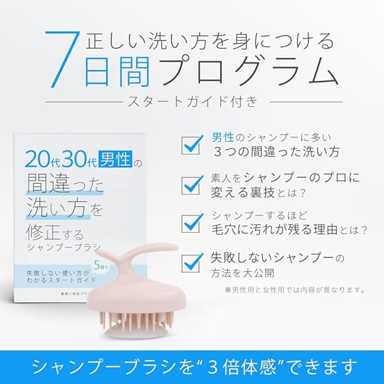 男性の間違った洗い方を変えるシャンプーブラシとスタートガイドのセット 男性用 フケかゆみ 頭皮洗浄ケアブラシ M メンズ 頭皮ケア ヘッドケア スカルプケア 毛穴汚れ 洗髪