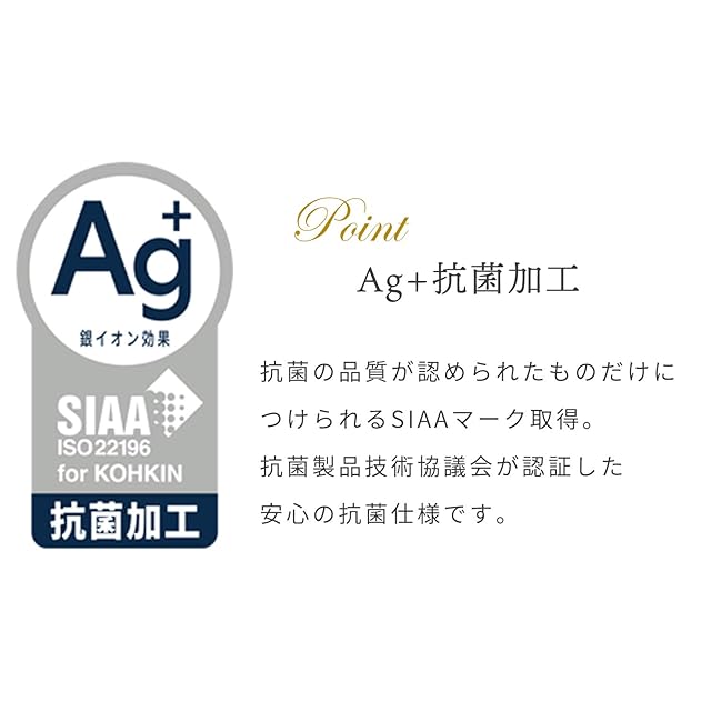 抗菌の品質が認められたものだけにつけられるSIAAマーク取得。抗菌製品技術協議会が認証した安心の抗菌仕様。