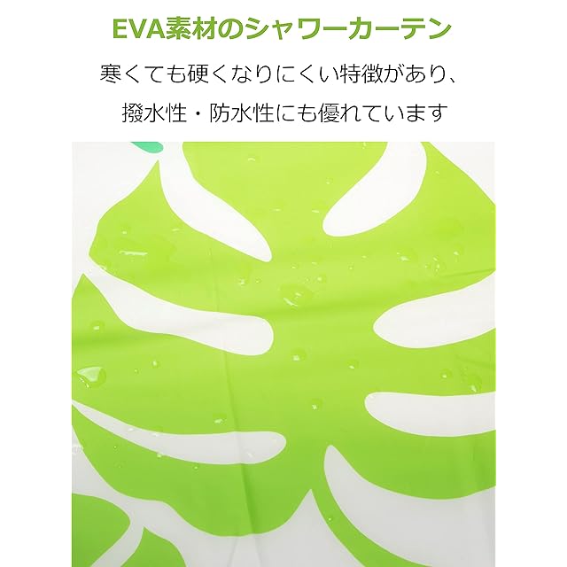 ストリックスデザイン シャワーカーテン 防水 モンステラ柄 135×180cm フック付き お部屋の間仕切りにも Sカン Cカン 取り付け簡単 ユニットバス 浴室 QB-158D | HiKaRiストア