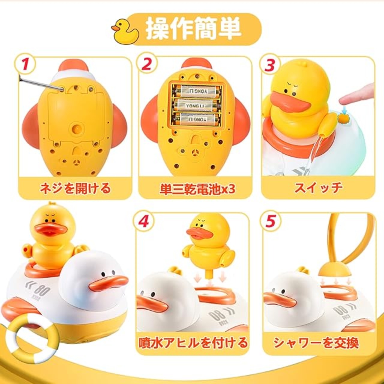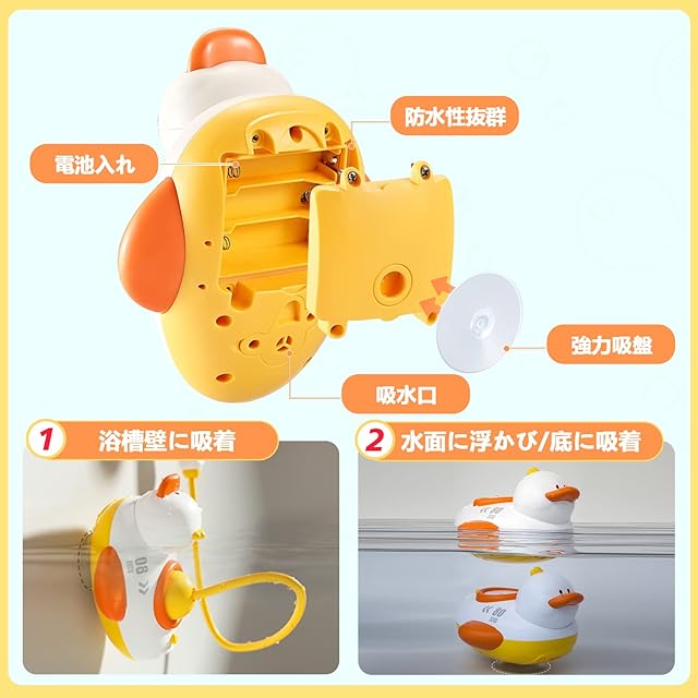 【面白いお風呂おもちゃ】可愛いアヒルの電動シャワーおもちゃセットです。付属の散水おもちゃと組み合わせて遊び、子供の入浴時間を面白くなります。お風呂が苦手の子にも向きます。