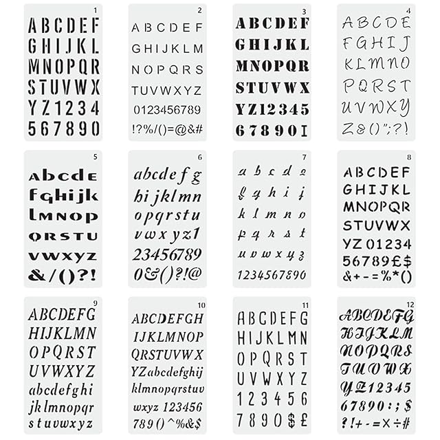 【種類が多い】このセットには、異なるデザインの12枚のステンシルシートが含まれています 。各種のアルファベット 、数字、句読点および最も一般的な記号が揃えております。多くのテンプレートがあり、さまざまな絵画のニーズを満たすことができます。自由自在に組み合わせてアレンジを楽しみましょう!