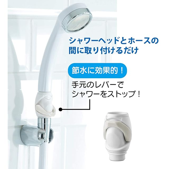 今お使いのシャワーに手もとストップ機能がつけられるシャワージョイント。