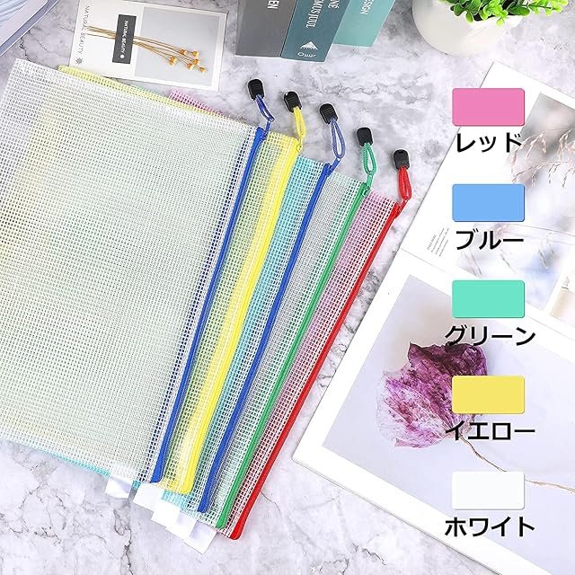 【多用途】これらのジッパー式ファイル袋はいつもファイル、紙、領収書などの事務用品の保管や分類に使いますが、鉛筆や絵筆、定規、クリップの収納バッグ、小学生の連絡袋などとして利用できます。しかも、メイクブラシ、アクセサリー、手芸用品のような生活雑貨の整理に活躍しています。ニーズに応じてさまざまな用途があります。