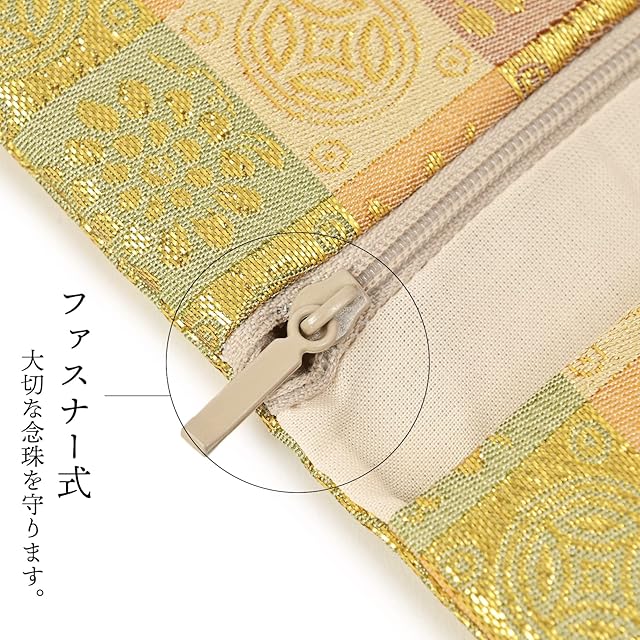 数珠入れ(念珠入れ)と経本や御朱印帳入れがセットになった便利なチャック付きポーチ