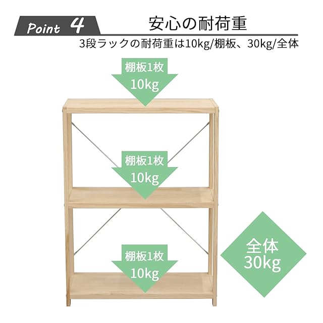 耐荷重:棚板10kg/枚、全体30kg